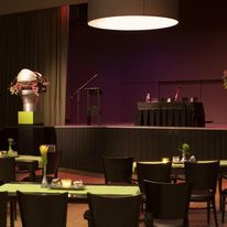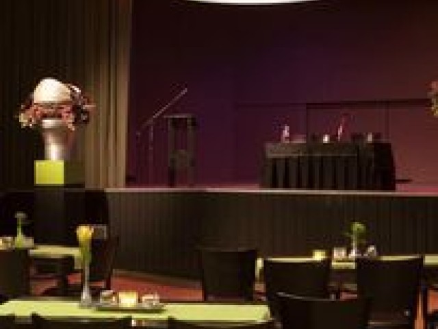 Chique (feest)zaal voor gezelschappen van 50 tot maximaal 350 personen. De Theaterzaal is uitermate geschikt voor recepties, condoleance koffietafels, grote vergaderingen of lezingen, theater- en muziekvoorstellingen, etc etc. Maar natuurlijk ook voor feesten en partijen! Groot podium met podiumdoek.